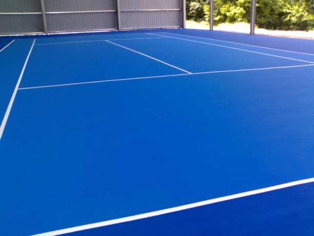Revestimiento de 1 a 2 mm de espesor, continuo, en colores, impermeable, altamente resistente al desgaste y a la acción de los agentes atmosféricos en los climas más extremos, su micro rugosidad lo hace idóneo para una práctica deportiva segura tanto al aire libre como en interiores.