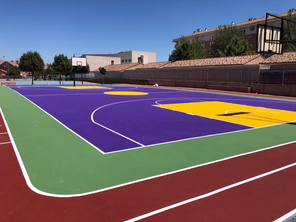 Revestimiento multicapa sobre base asfáltica para superficies deportivas multiuso en instalaciones elementales de colegios, ayuntamientos y clubs deportivos para la práctica de los deportes base como el tenis, baloncesto, balón mano, fútbol sala… tanto en interiores como al aire libre.