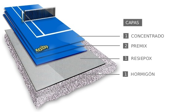Revestimiento de 1,0 a 3,0 mm de espesor, continuo, en colores, impermeable, altamente resistente al desgaste y a la acción de los agentes atmosféricos en los climas más extremos, su micro rugosidad lo hace idóneo para una práctica deportiva segura tanto al aire libre como en interiores.