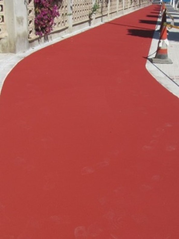 Revestimiento multicapa de aplicación sobre solera de hormigón, para carriles bicicleta, zonas urbanas y vías peatonales que garantiza una superficie en color, antideslizante y resistente al desgaste. Ideal para la rodadura, señalización y decoración de este tipo de vías en espacios urbanos.